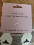 These socks are fabulously soft - great for padding around the house in. Very warm, 8% wool content with viscose for softness Size UK 4-7